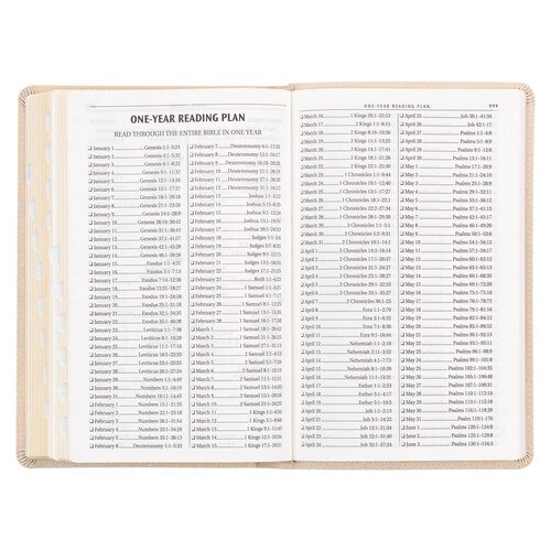 This gift Bible boasts several luxurious design features that enhance its appeal, such as exquisite gilt-edged pages that add a touch of elegance. You'll also find a champagne-colored satin ribbon marker, perfect for keeping your place while adding a hint of sophistication. Additionally, the convenient thumb indexing ensures effortless navigation through the books of the Bible, making it easy to find the passages you're looking for.